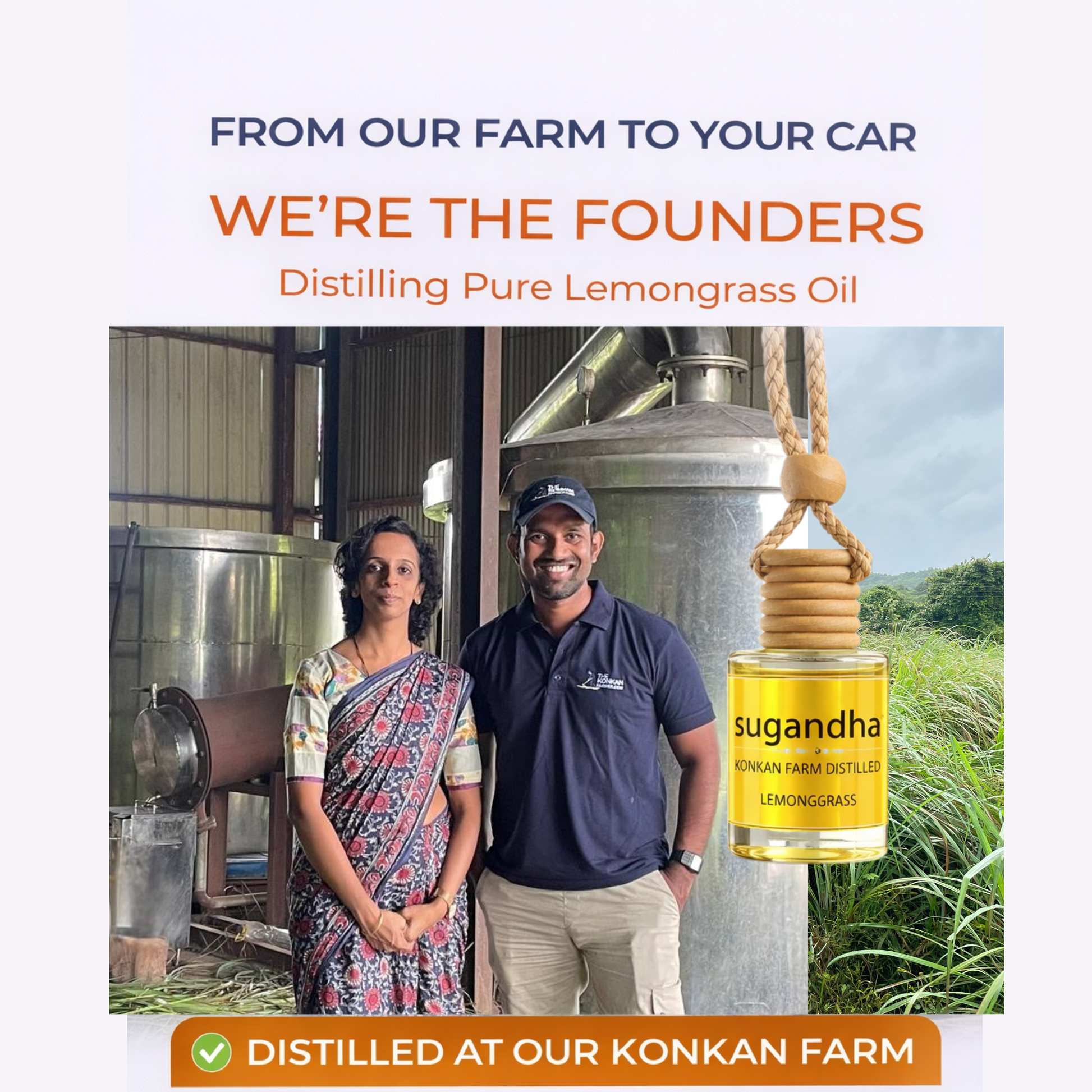 - From farm, not a factory Unlike regular car fresheners made with artificial perfumes, Sugandha is crafted by farmers using traditional steam distillation, ensuring purity, freshness, and authentic plant-based quality.